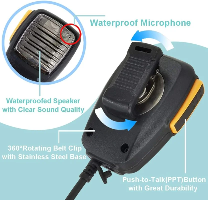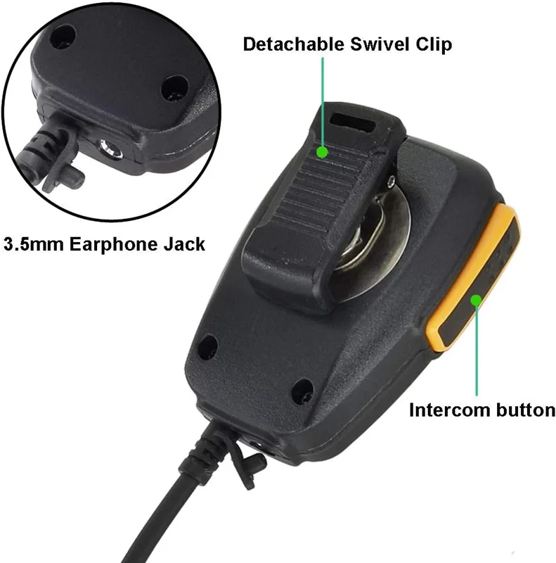 =اندازه کوچک، حمل آسان اما دکمه بزرگ PTT، ارتباط آسان را فراهم میکند. میکروفون بلندگو، میکروفون رادیویی نوع کنوودی با دو پین است. یک پین ۳.۵ میلیمتری و دیگری ۲.۵ میلیمتری است و ۱۱ میلیمتر از هم فاصله دارند.وسیله ای جهانی و مؤثر برای کارهای تیمی روزمره، مانند نگهبانی، پلیس، ارتش